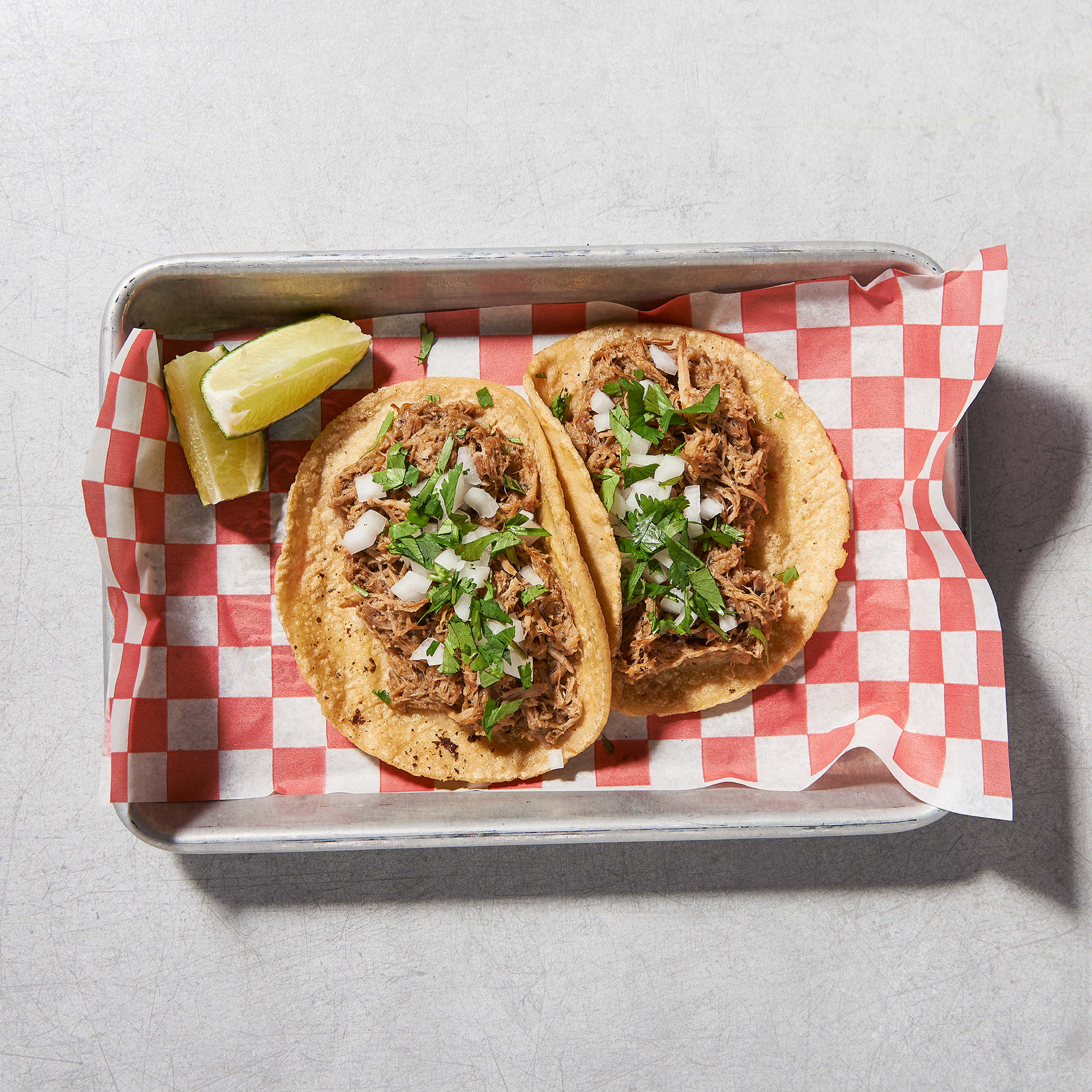 Pork shoulder, onions and cilantro on top.
